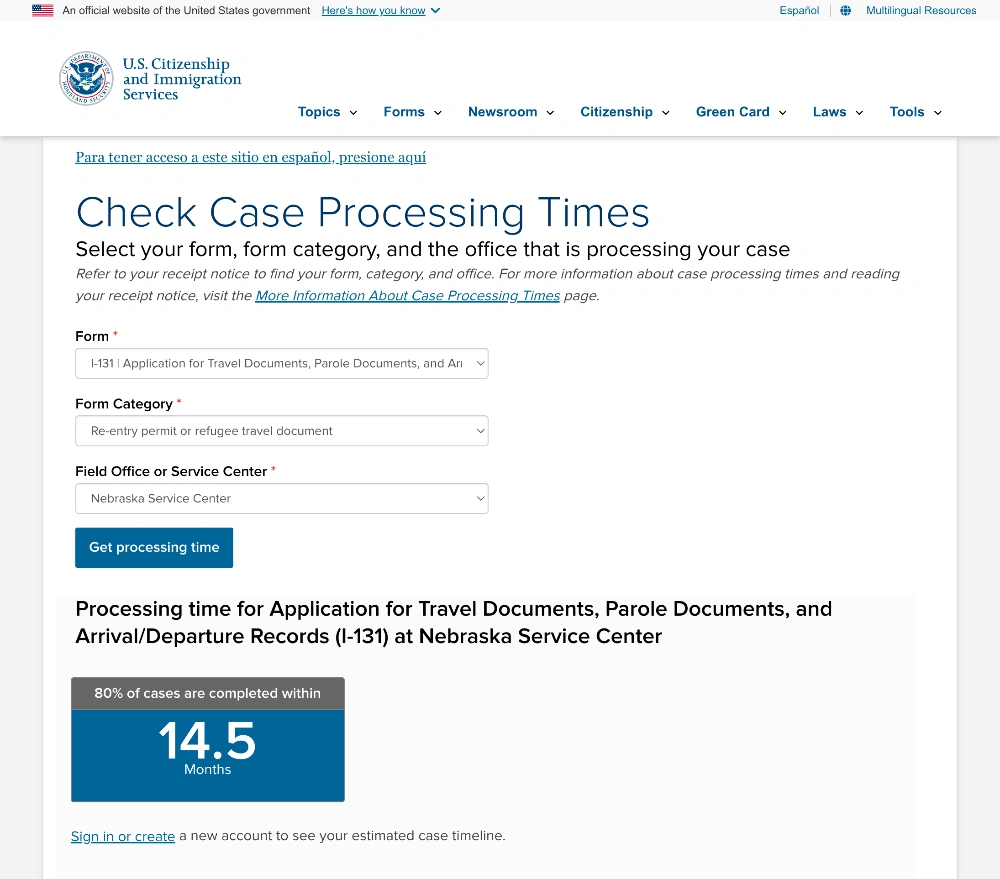 Processing Time は以下の USCIS のページで確認することができます。最新の processing time は以下のサイトで確認してください。
