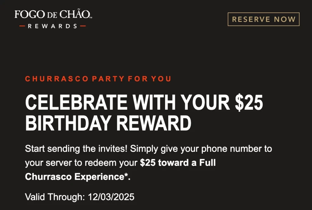 ブラジリアンステーキハウスの FOGO DE CHÃO から $25 のリワードが届きました。